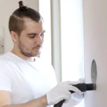 Сотрудники бригады выбирают ровный участок стены на визуальной основе, учитывая пожелания клиента. С учетом размера прибора и отступов место проверяют на отсутствие инженерных проводов