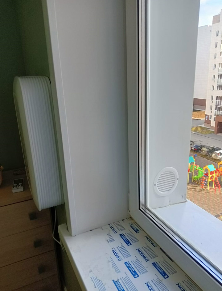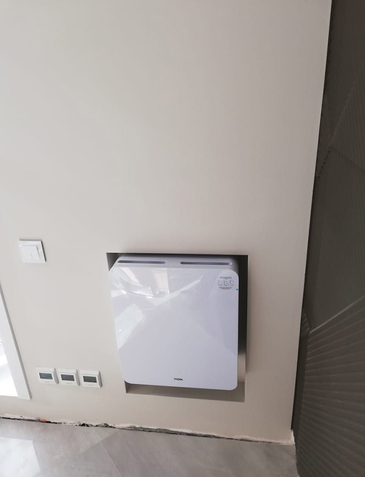 Монтаж активной приточной вентиляции на готовое отверстие со скрытым электроподключением